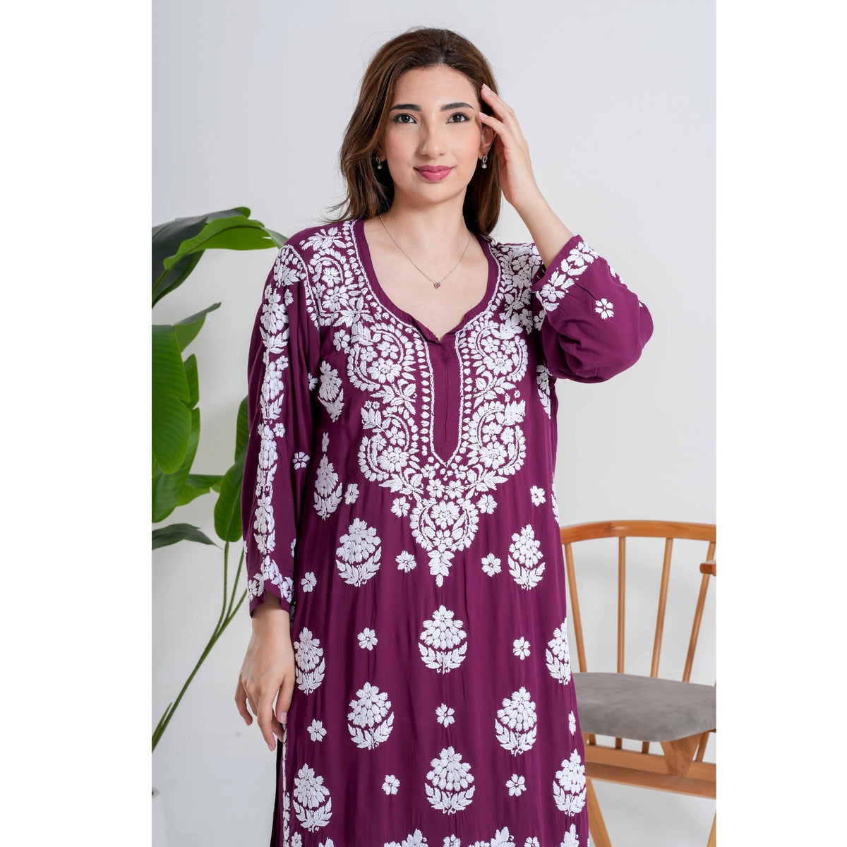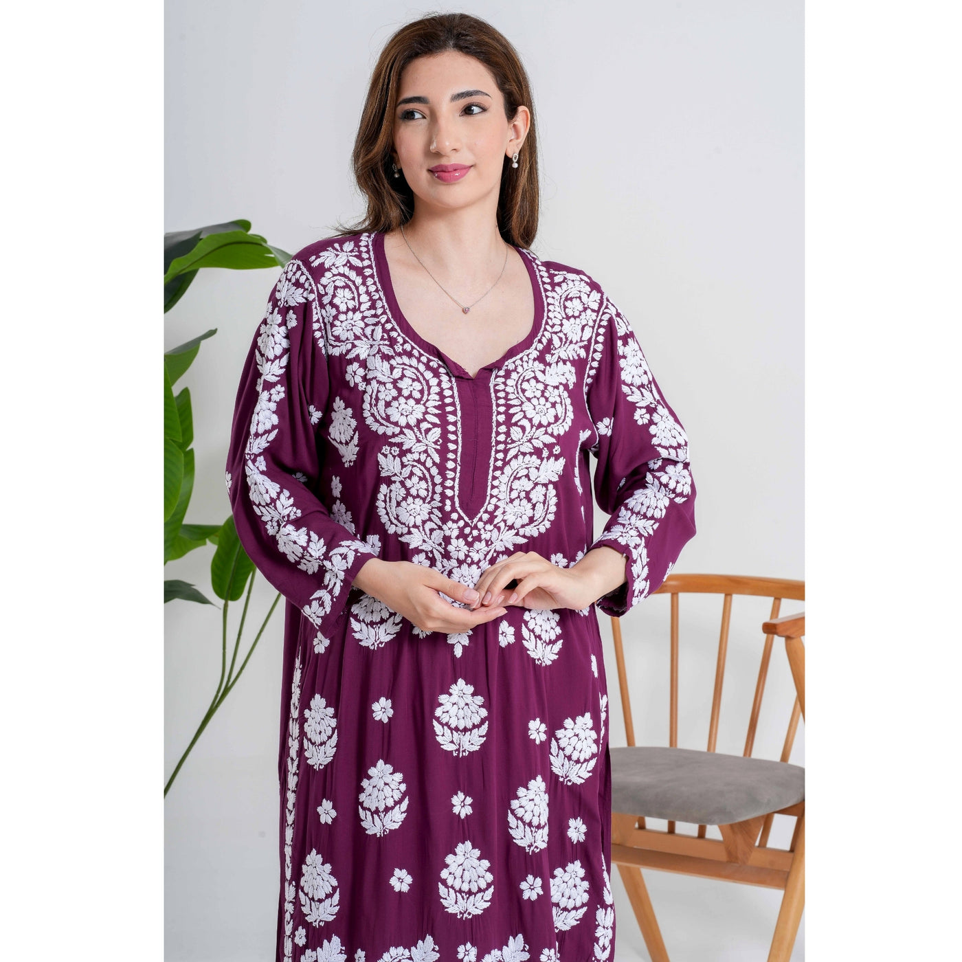 Onion Maroon Chikankari Handcrafted Suit